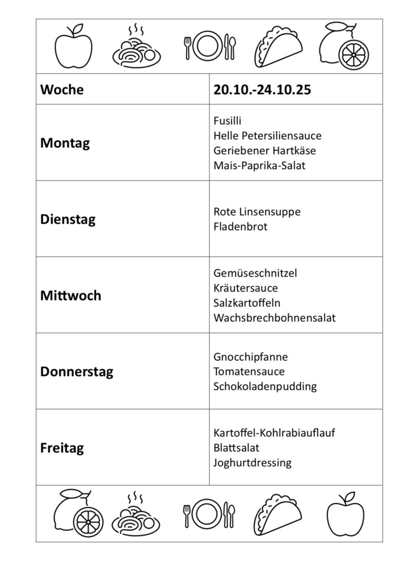 Das Essen wird nach den Richtlinien der Deutschen Gesellschaft für Ernährung (DGE) zubereitet. Falls ihr Kind Lebensmittelunverträglichkeiten hat, wird selbstverständlich darauf Rücksicht genommen.